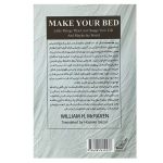 کتاب تختخوابت را مرتب کن اثر ژنرال ویلیام اچ. مک ریونکتاب «تختخوابت را مرتب کن» نوشتهی «ژنرال ویلیام اج مک یون» و ترجمهی «حسین گازر» است. نویسنده در مقدمه کتاب آورده است: «در روز هفدهم ماه می سال ۲۰۱۴، من افتخار این را داشتم که در جشن فارغالتحصیلی دانشجویان دانشگاه تگزاس در آستین سخنرانی کنم. اگرچه خودم هم از همین دانشگاه فارغالتحصیل شده بودم، ولی بعید میدانستم یک ژنرال جنگی که زندگی حرفهای خود را در جنگ سپری کرده، خیلی مورد استقبال دانشجویان کالج قرار بگیرد. اما دیدن آنهایی که با اشتیاق برای شنیدن سخنرانیام آمده بودند، مرا بسیار شگفتزده کرد. به نظر میرسید ده درسی که من در تمرینات نیروی دریایی یاد گرفتم و اساس صحبتهایم را شکل میداد، مورد توجه جمعیت بسیاری قرار گرفته است. این درسها و تجربیات ساده را در تمرینات نیروی دریایی کسب کردم و هر ده درس در مقابل چالشهای زندگی اهمیتی یکسان دارند و این مهم نیست که شما در چه مرحلهای از زندگی و دارای چه جایگاهی در جامعه باشید. در سه سال گذشته، بارها و بارها مردم در خیابان جلویم را گرفتند تا داستانشان را برایم تعریف کنند. همهی آنها میخواستند بیشتر در اینباره بدانند که چطور این ده درس، زندگیام را شکل داده و دوست داشتند افرادی را بشناسند که در دوران حرفهای الهامبخش من بودند. این کتاب کوچک، تلاشی برای انجام این مهم است. هر فصل متن کوتاهی را در بر گرفته که حاوی یکی از همین درسهاست. امیدوارم از خواندن این کتاب لذت ببرید!» در قسمتی از کتاب میخوانیم: «جنسیت، پیشینهی مذهبی یا قومی، جهتگیری ذهنی و یا جایگاه اجتماعی شما مهم نیست. در این دنیا مشکلات ما مشابه است و درسهایی که برای غلبه بر این مشکلات و حرکت رو به جلو یاد میگیریم تغییر دادن خودمان و دنیای اطرافمان برای همهی ما به شکلی برابر کاربرد دارند.» این کتاب را انتشارات «کولهپشتی» منتشر کرده است.